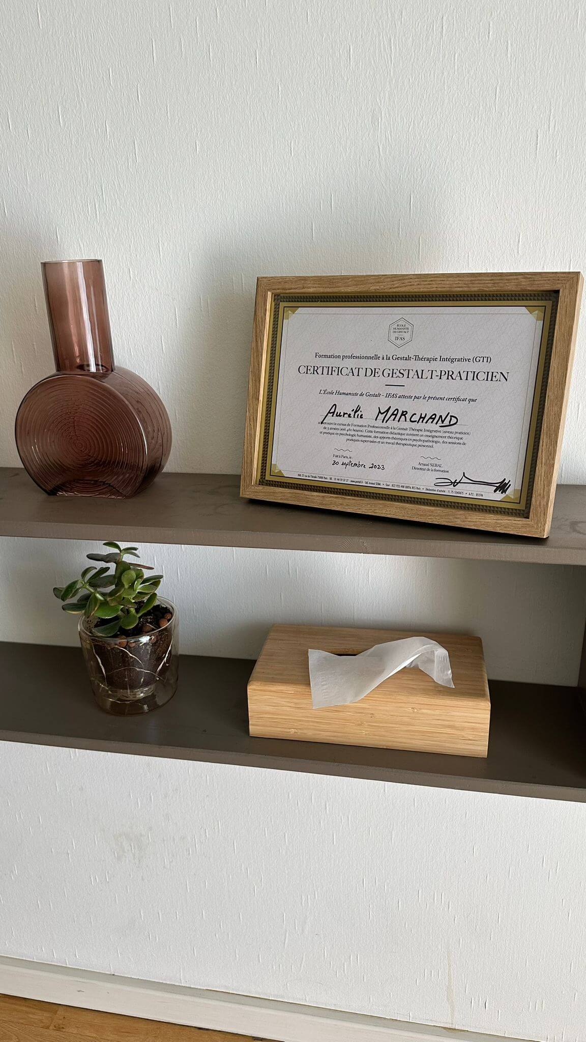 Je suis supervisée par un Gestalt thérapeute certifié de l'école.